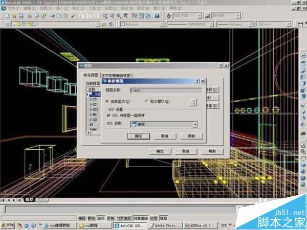 30、点新建按钮,输入视图名称[相机名]如;客厅,确定,即可保存刚做的相机文件;如需再次调入相机文件,输入命令v后,点取相机列表中的客厅文件,再点置为当前即可调出相机文件。