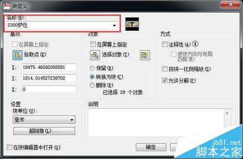3、下面进行块重组,选择需要组成块的设备零件,然后输入快捷键B,再回车弹出块定义窗口