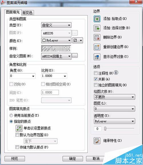 经过实践特别提示:delta-x, delta-y中的偏移是相对于直线旋转后的偏移,尤其是当直线旋转90度,图形中x向的偏移在这里是相对直线进行y方向的偏移。因为偏移为相对直线旋转后的坐标进行偏移,所以偶尔会出现闭合图形如椭圆、多边形等在填充后与填充图案不一致,出现一片混乱。此时应该进行填充图案编辑,重新指定填充图案原点坐标后就ok了。