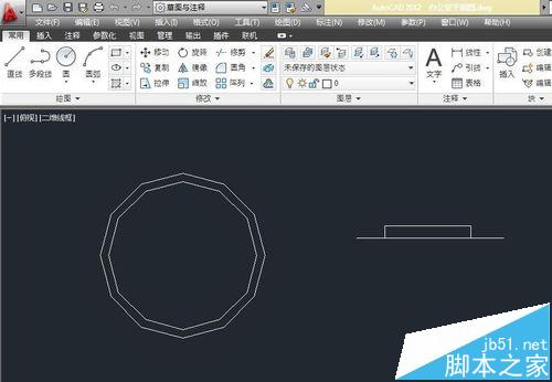 3、在另一边用”pl“命令画一个台子。现在的目的是将正12边形按照比例放置到台子上。