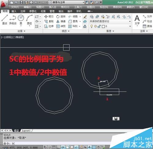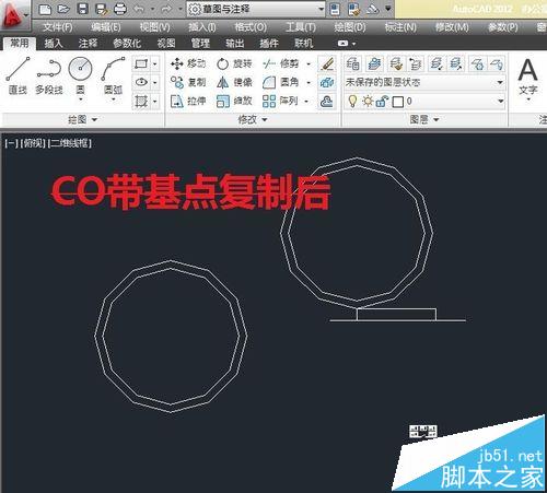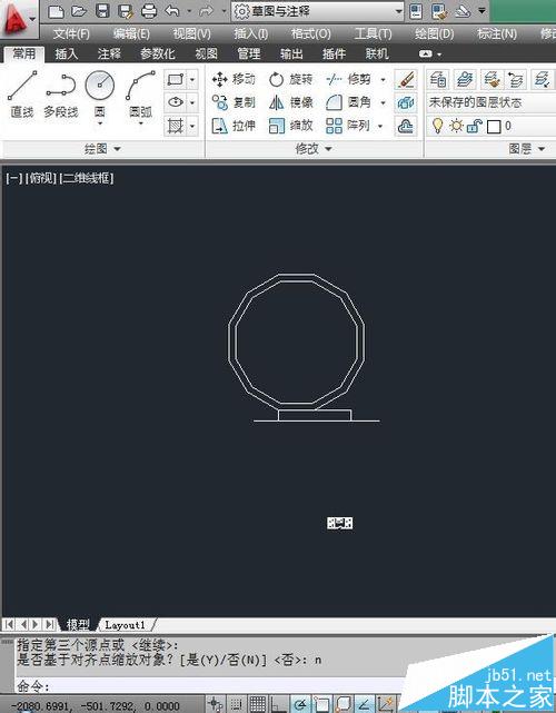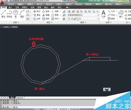 2、“O”(偏移命令),输入合适的偏移大小(使偏移出来的图形好看)——选择所画的正12边形,然后点一下正12边形内侧。