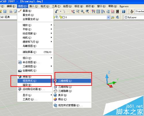 2、然后我们点击工具栏里面的“视图”选项,然后按照我的图片提示进行下一步操作。这里我们选择“二维样式”,然后选择“二维线框”。