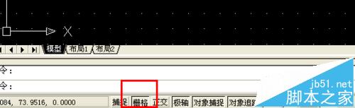 5、此刻,我们将鼠标移至软件界面最底端,然后点击“栅格”,使这个功能选项处于关闭状态,然后我们的熟悉的Auto CAD软件的工作界面就出现了,我们就开始自己的制图之旅吧。