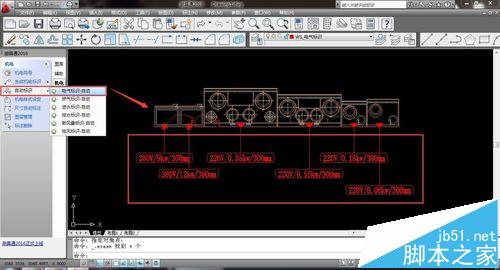 2、生成机电符号:点击机电---生成机电标识---生成全部标示---选择设备--回车确认