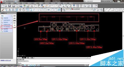5、标注机电符号之间的尺寸方便施工:机电--尺寸标注--选择设备--回车确认