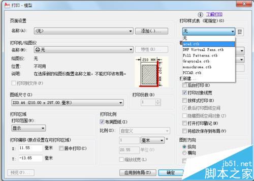 5、在展开窗口中打印样式表中选择acad格式