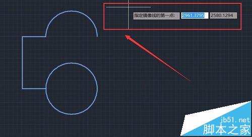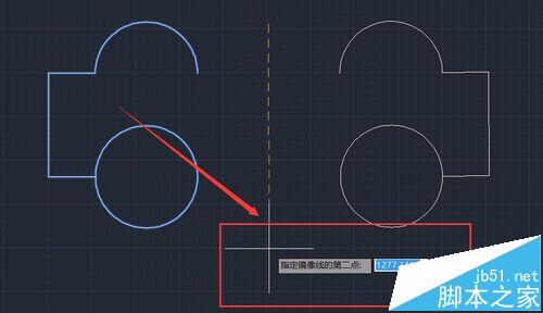 9、然后向下拖动鼠标,指定第二点,这时可以看到左面的图形对称到右边了,如图所示:
