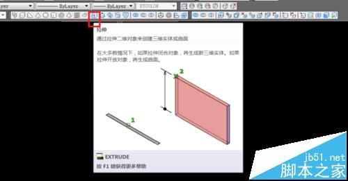 6、现在我们使用拉伸命令来进行一个三维制图的操作。命令图标如下图。