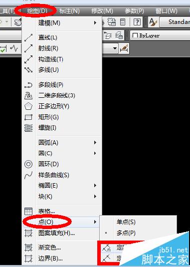 1、打开CAD界面。选择“绘图”——“点”,这时,就可以看到了。如下图。
