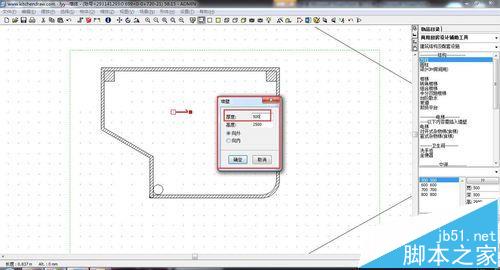 2、按ESC确认弹出一个窗口,根据长度调整墙体的厚度(与长度相同)