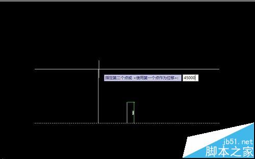 2、将地面的水平线向上复制一根,距离地面为45米。