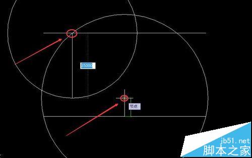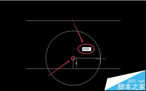 4、圆与地面上45米的水平线有两个交点,先选左边的交点为圆心,再画一个半径为45米的圆。