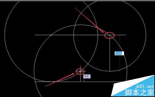 5、同样的方法,在右边的交点也画一个半径为45米的圆。