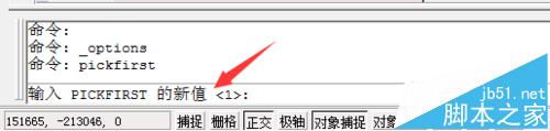 1)在命令行中输入 "pickfirst" ,将其设为1