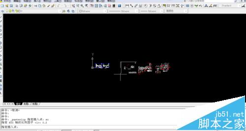 4、输入比例因子“0.2”然后回车,你就能看到被复制的图纸又出来了;变小了吧!