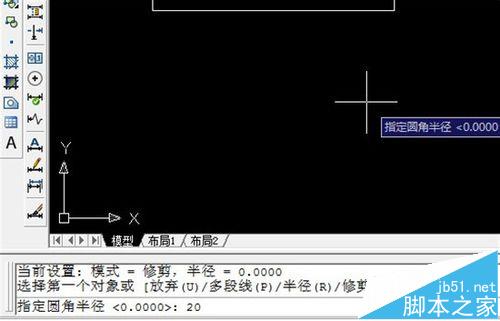 4、我们选择半径r,即输入r,然后回车。并输入半径值20,回车。