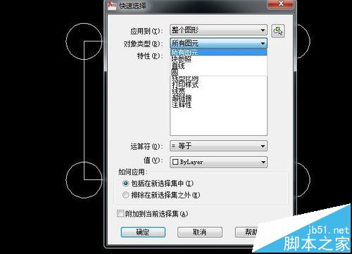 3、选择对应的对象类型,这里现在“所有图元”。