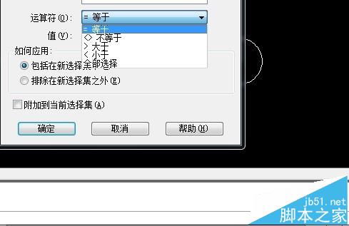 6、选择运算符,有等于、不等于、大于、小于、全选五种。