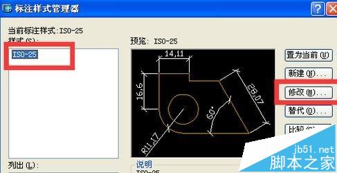 2、弹出的框图中找到需要修改的标注样式,然后点击右边的“修改按钮”