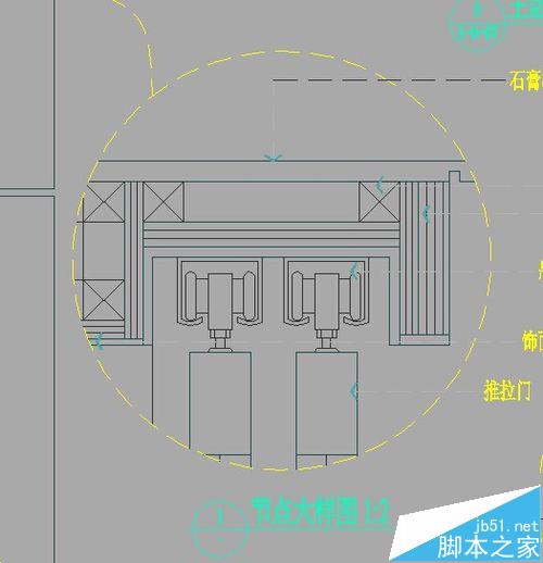 9、节点和大样;节点和大样可以做一种解释,都是对造型的局部位置进行放大处理,因为图纸的打印比例是固定的,但是有些局部线条绘制的过于密集导致看不清楚,所以需要放大处理。在节点大样图中要根据情况详细表明每一种材料每一个角落的详细尺寸。