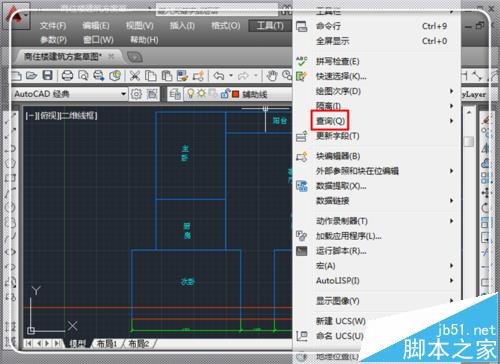 2、调出工具选项,用鼠标指着“查询Q”,激活查询命令。
