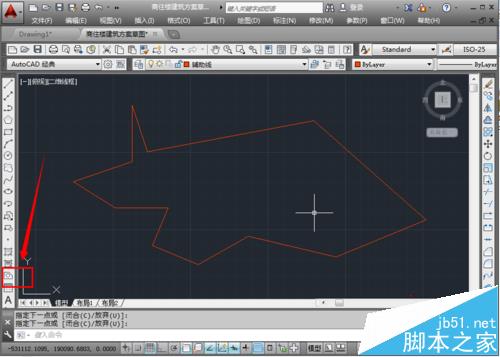2、点击绘图界面左边的“面域”图标,或者是点击菜单栏中“绘图”——“面域”。