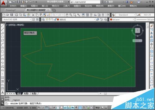 CAD中建立面域有多个好处,可以用面域轻松计算不规则图形的面积,还可以对该部分进行颜色填充,也可以提取该部分图形的形心,怎样建立面域呢,见下面图文教程。