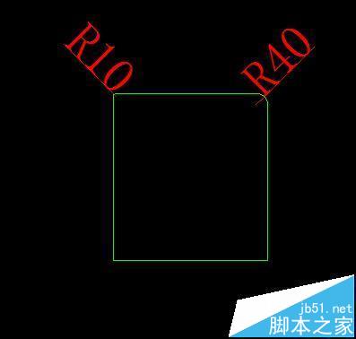 2、调用圆角命令对矩形进行圆角,左上角半径为10,右上角半径为40.
