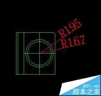 4、调用圆命令,绘制出尺寸半径为167和195 圆,作为洗衣机的圆筒造型。可以先建一条辅助线,完成后删掉。