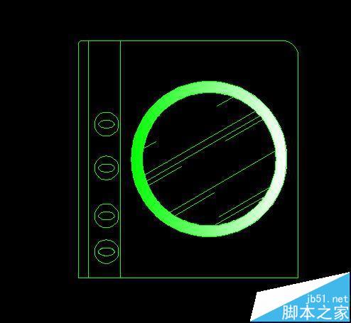 6、调用椭圆命令,绘制出洗衣机开关按钮。,并用复制得到四个开关。绘制洗衣机完成。