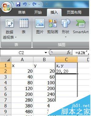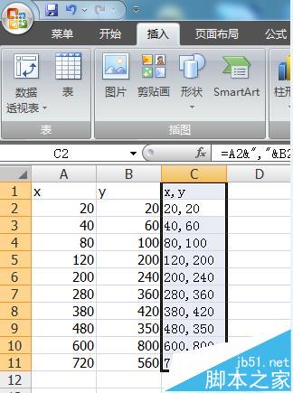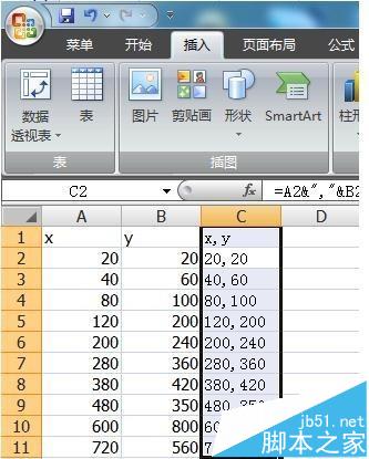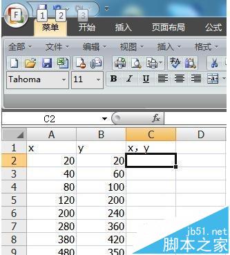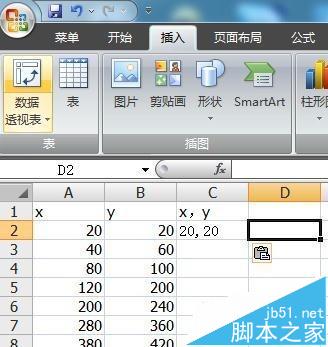 1、如图所示为例,在EXCEL中建立坐标数据