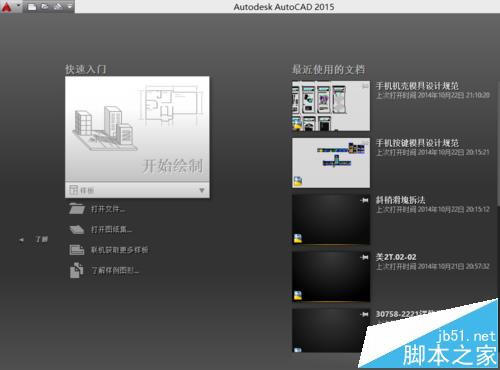 1、双击电脑桌面上的CAD2015快速启动图标,打开的原始界面如下图: