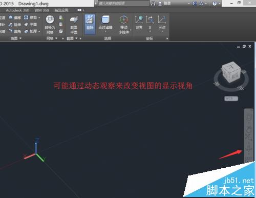 6、通过CAD绘图窗口右上角的绘图观察器来改变视角,如下图: