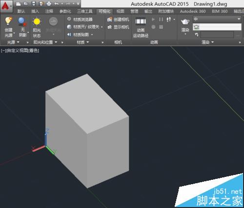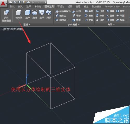 7、调完视角后,使用长方体绘图命令画一个长方体,如下图: