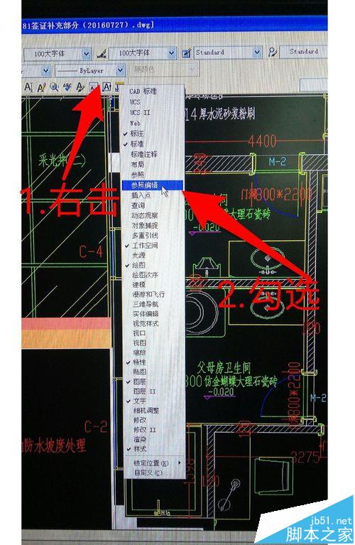 1、在命令行的命令按钮上用鼠标右键单击,出现下拉命令,勾选【参照编辑】,注意,在空白处右键单击是找不到参照编辑的。