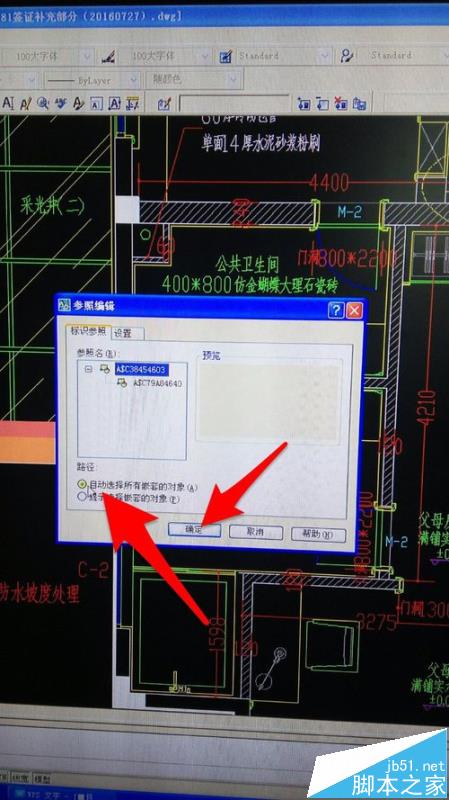3、接着点击参照编辑——单击要编辑的图块——选择【自动选择所有嵌套的对象】——确定,就可以使得图块在图纸中原有位置进行编辑。