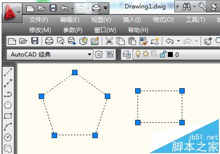 1、cad成组方法很简单,我们首先画出两个不同的图形。