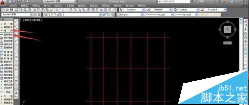 4、移动鼠标确定轴网的位置,单击鼠标左键,即可进行位置的选定,轴线也就绘制完成,下面即可依据轴线绘制相应的墙体线条