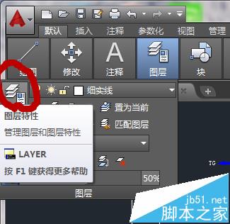2、点击鼠标左键,可以看到跳出一个对话框,如图。上面有许多按钮,这次我们所要用到的是“图层特性”这一栏,鼠标左键点击“图层特性”。