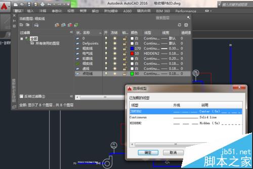 6、鼠标左键点击图中红线部分可以对该图层线型进行对应的修改。如图,我的图层名是“点划线”,所以在线型中选中“点划线”一栏就可以了。