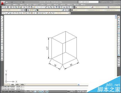 5、在命令行里面出现“选择对象”,此时光标变成一个矩形框。然后选择需要修改的尺寸,如长高度尺寸“127”