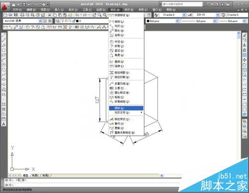 4、点击上方下拉菜单“标注(N)”选择“倾斜(Q)”