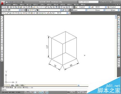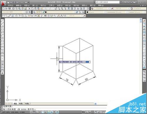 6、选择后,点击右键。此时命令行会出现“输入倾斜角度(按ENTER标示无):”输入需要倾斜的角度。如-30°,之后成功倾斜