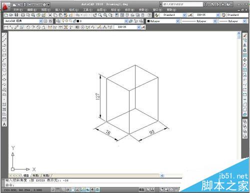 3、然后对其长、宽、高进行标注,如下图为常规标注。如何修改成图1的效果