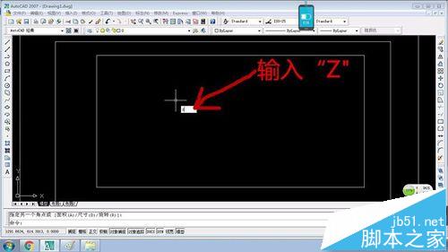 3、这时直接点击图面,输入英文字母"Z",这是缩放的意思。
