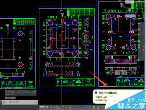 6、文件在输出完成后,CAD右下角会有提示;其输出的IGS图档名称如图2;