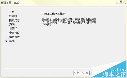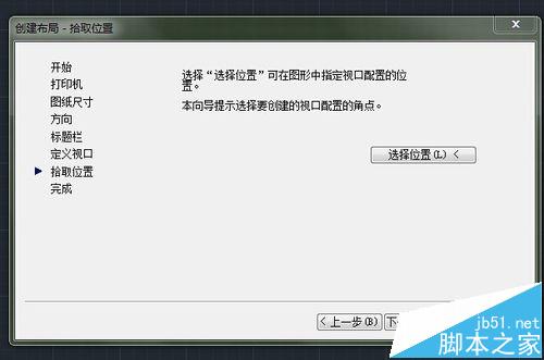 8、单击“选择位置”按钮,进入绘图区选择视口位置,然后单击“下一步”按钮,打开“创建布局-完成”对话框,单击“完成”按钮即可。