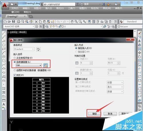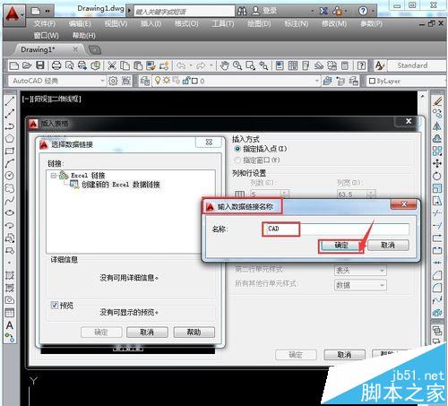 7、在选择数据链接处产生一个名称为CAD的链接,点击确定