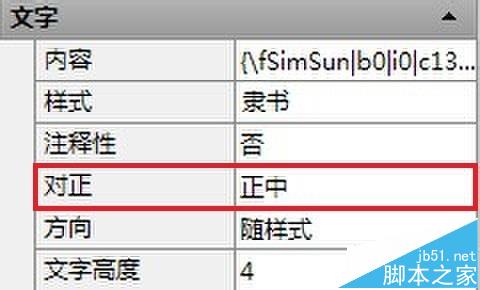 2、选择多行文字,点开特性,把多行的对正选项更改为正中