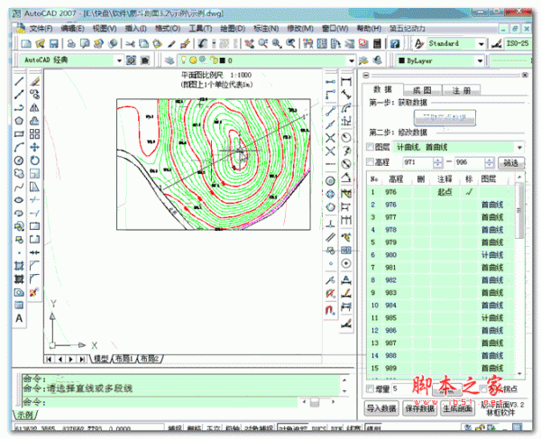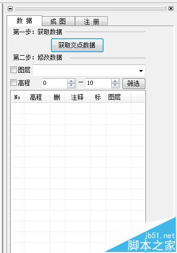5、切换到插件界面“数据”一栏,点击“获取交点数据”,选择地形图中已画好的剖面勘探线。